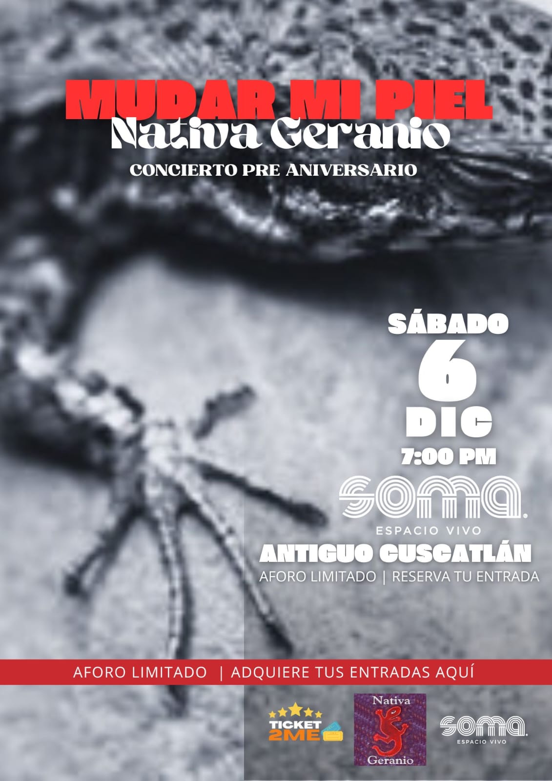 Nativa Geranio se presentará el 6 de diciembre de 2025 en SOMA, Antiguo Cuscatlán, con un concierto que promete ser un homenaje vibrante a su trayectoria y evolución musical.